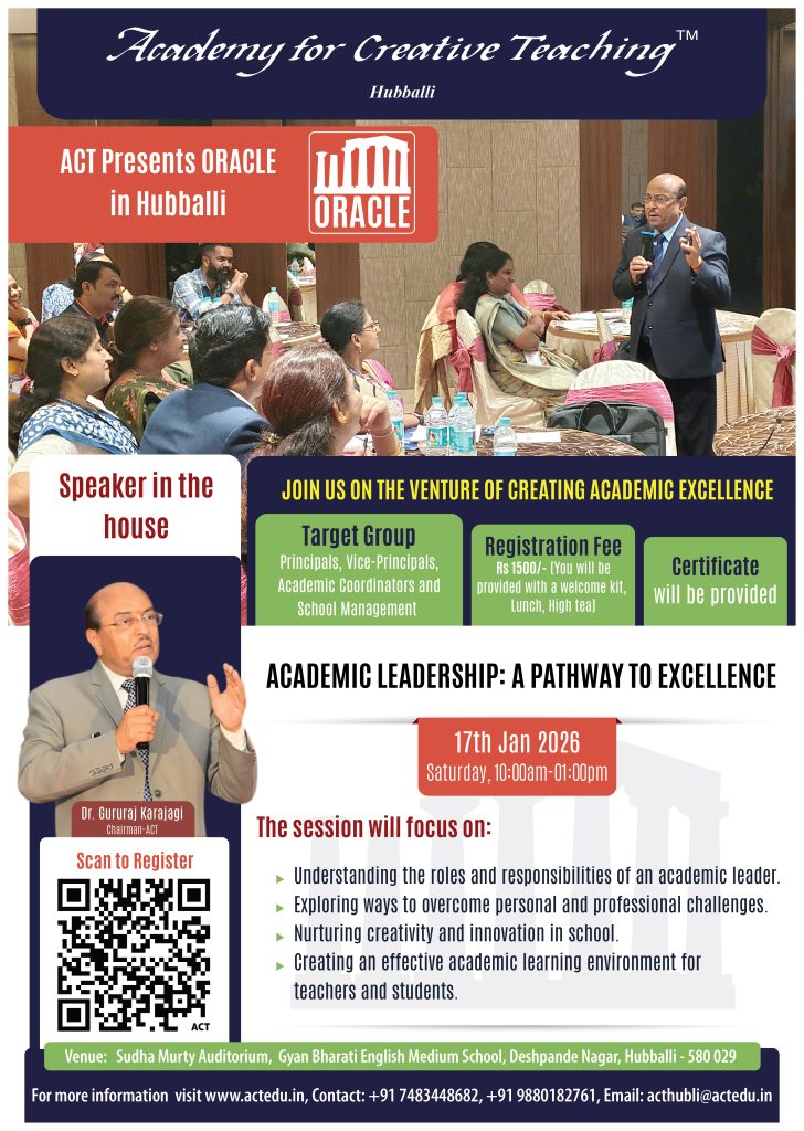 We are pleased to invite you to a special session titled “Academic Leadership: A Pathway to Excellence.” As the saying goes, “A school is as good as the head of the institution,” and this programme is designed to strengthen the academic leadership capacity of school heads in today’s evolving educational landscape. This session empowers principals and school leaders to shape impactful teaching–learning environments by exploring the essential competencies, mindsets, and strategies that drive academic success. Through reflective dialogue, practical insights, and evidence-based practices, the session aims to strengthen leadership capacity to inspire teachers, elevate student learning outcomes, and build a culture of continuous improvement. Join us as we reimagine academic leadership as a powerful pathway towards excellence in schools.